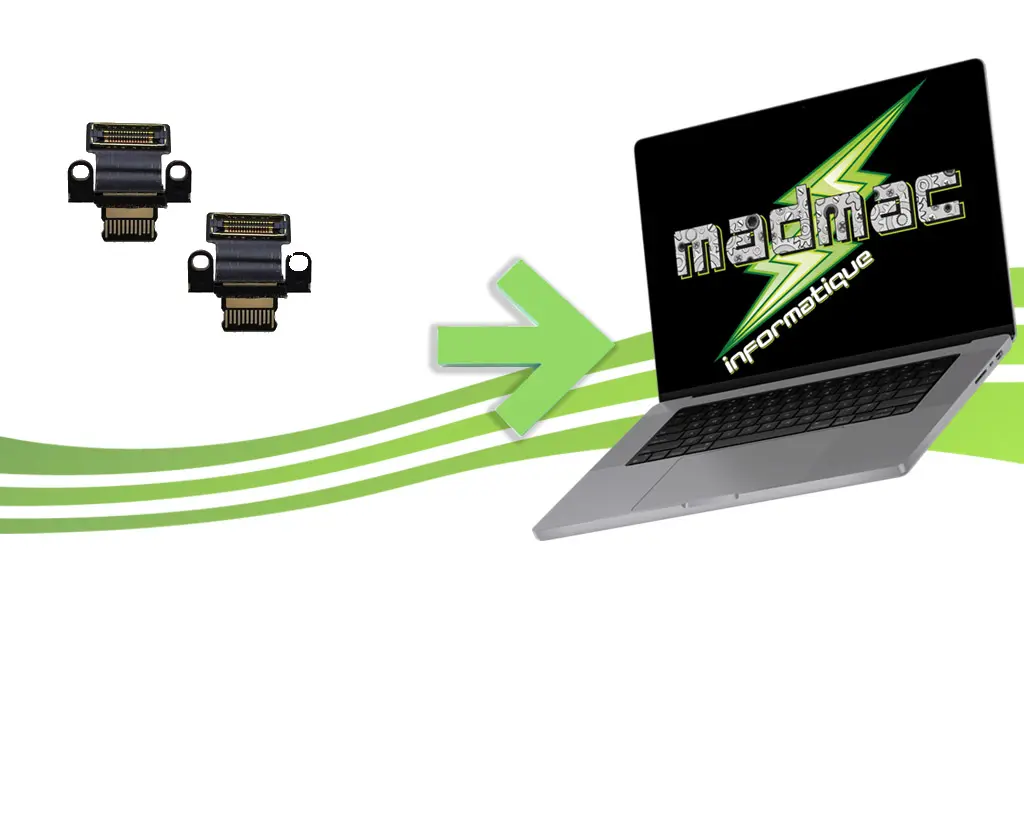 Chez Madmac Informatique, nous remplaçons le connecteur USB-C défectueux avec soin, dans notre atelier, sans rendez-vous et dans des délais rapides.